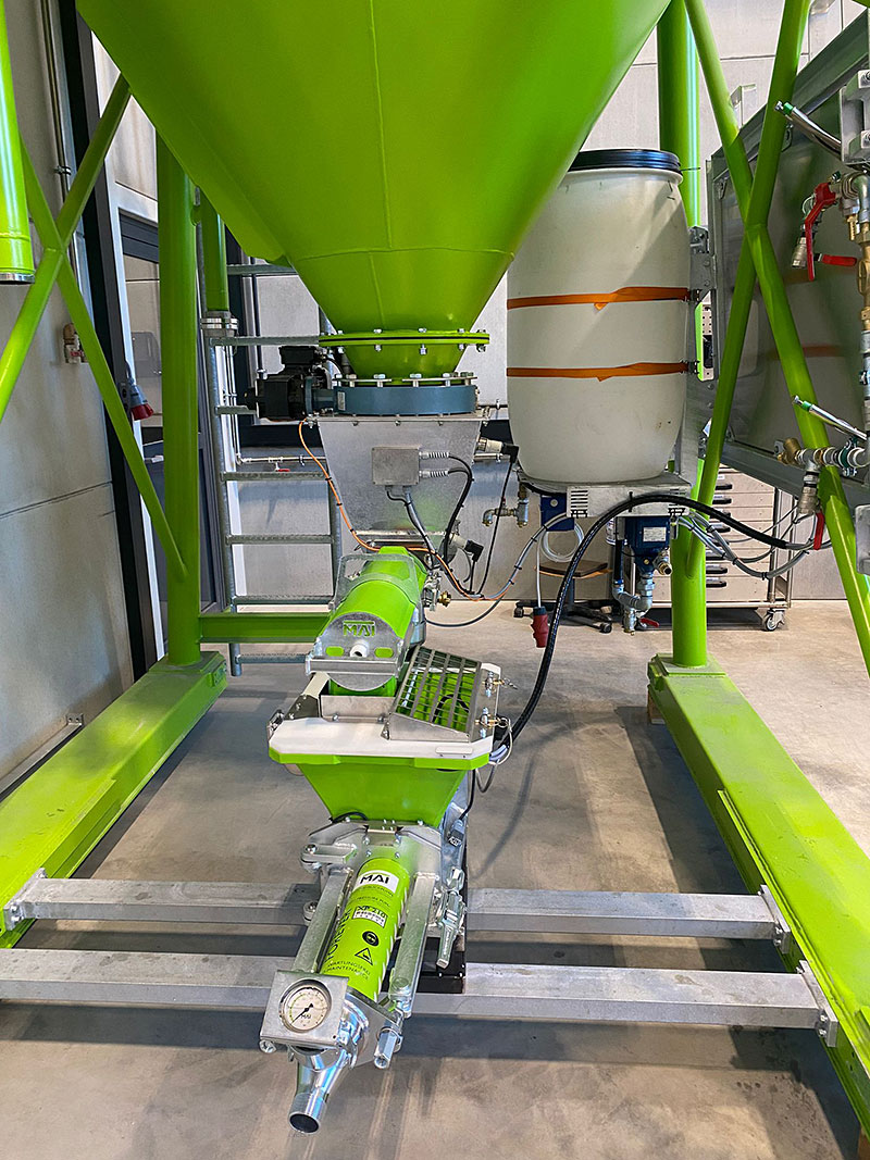 The MAI®MULTICOMP-3D is a powerful mixing pump that is permanently mounted on the silo and is ideal for stationary applications. Installation on the silo ensures a dust-free environment and the optional rotary feeder guarantees an even and uninterrupted supply of dry material, regardless of the fill level in the silo.