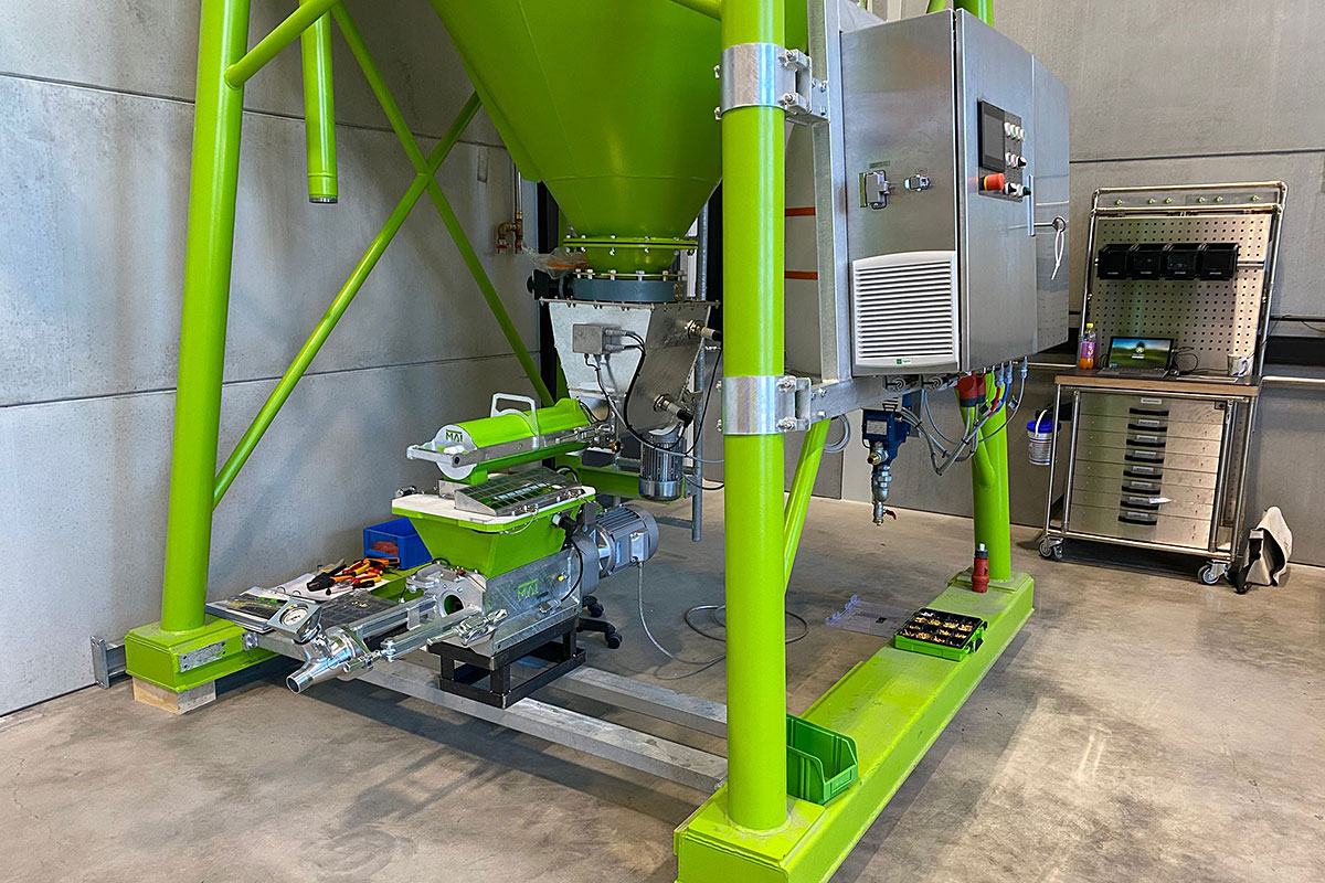 Depending on the worm pump used, delivery rates of between 1 l/min and 55 l/min can be achieved. Within the performance range of the respective worm pump, the pump capacity can be continuously adjusted either directly on the machine or via the external control (4-20 mA, 0-10 V, OPC-UA).