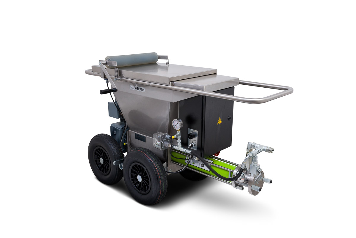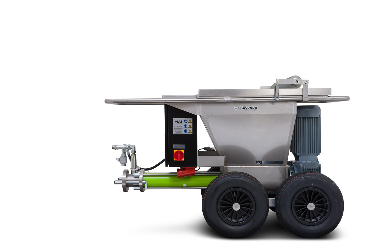 The high-pressure screw pump offers a superior alternative to conventional piston-operated airless spraying equipment and is the ideal choice for machine-compatible premixed fillers and coating materials. he MAI®4SPARK operates almost vibration-free and quietly compared to piston pumps.
